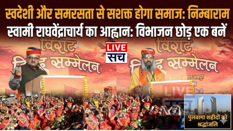 विराट हिंदू सम्मेलन: निम्बाराम का आह्वान- ‘पंच परिवर्तन’ को जीवन का हिस्सा बनाएं; स्वामी राघवेंद्राचार्य बोले- समाज को विभाजन से बचाना जरूरी
