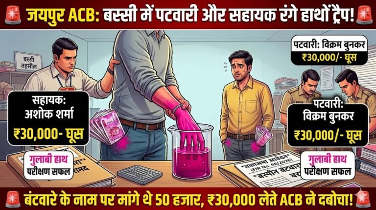बस्सी तहसील में भ्रष्टाचार पर ACB का बड़ा प्रहार: जमीन बंटवारे के नाम पर 30 हजार की घूस लेते पटवारी और सहायक गिरफ्तार