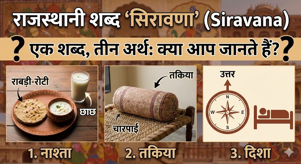 इसलिए, अगली बार जब आप राजस्थान आएं और कोई ‘सिरावणा’ शब्द का इस्तेमाल करे, तो पहले संदर्भ (Context) देखें—कि वह रसोई में है, चारपाई पर है, या दिशा बता रहा है!