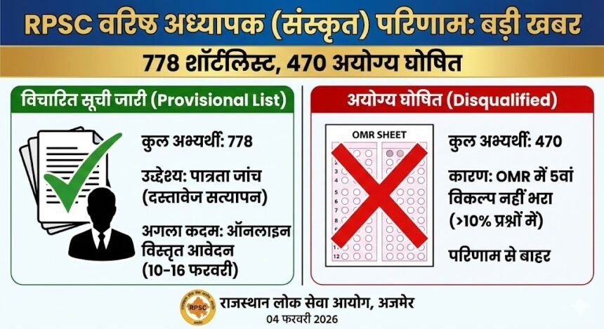 RPSC सीनियर टीचर भर्ती: संस्कृत विषय की प्रोविजनल लिस्ट जारी, 778 अभ्यर्थी शॉर्टलिस्ट; ‘5वां विकल्प’ नहीं भरने वाले 470 कैंडिडेट अयोग्य घोषित
