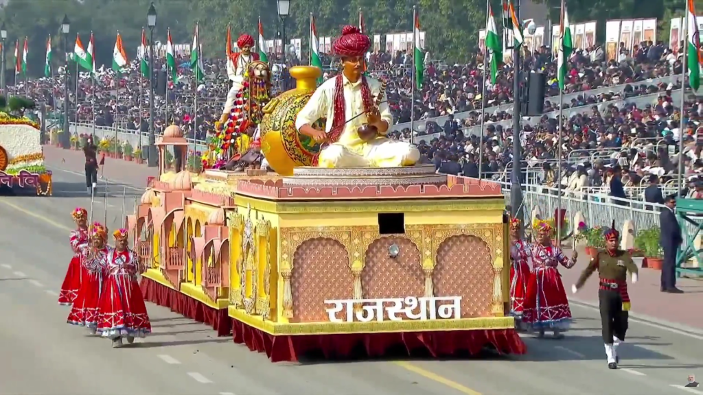रावणहत्था की झनकार और लोक संस्कृति का संगम दृश्य के साथ-साथ श्रव्य (Audio) अनुभव भी जादुई था। झांकी के साथ चल रहे लोक कलाकारों ने प्राचीन वाद्ययंत्र ‘रावणहत्था’ (Ravanhatha) की मधुर स्वर लहरियां बिखेरीं। किवदंती है कि इस वाद्ययंत्र का संबंध लंकापति रावण से है। रावणहत्था की धुन पर पारम्परिक वेशभूषा में थिरकते कलाकारों ने कर्तव्य पथ के माहौल को राजस्थानी रंग में रंग दिया। झांकी में केवल इमारतों का प्रदर्शन नहीं था, बल्कि महिला सशक्तिकरण और हस्तशिल्प में महिलाओं की भूमिका को भी रेखांकित किया गया। राष्ट्रपति द्रौपदी मुर्मू और मुख्य अतिथि ने भी राजस्थान की इस प्रस्तुति को बड़ी उत्सुकता से निहारा।