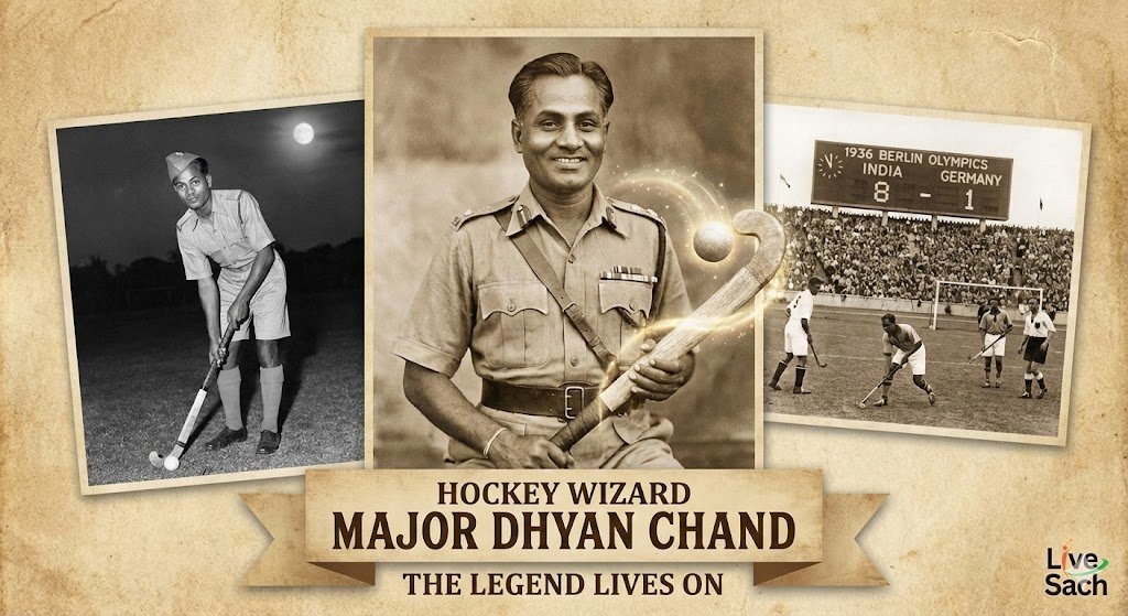 भारतीय खेल इतिहास के पन्नों में अगर कोई नाम स्वर्ण अक्षरों में लिखा जा सकता है, तो वह नाम है मेजर ध्यानचंद (Major Dhyan Chand)। उन्हें केवल एक खिलाड़ी कहना उनके कद को कम करने जैसा होगा; वे हॉकी के ऐसे ‘जादूगर’ थे, जिनकी स्टिक से गेंद ऐसे चिपक जाती थी मानो उसमें कोई चुंबक हो।