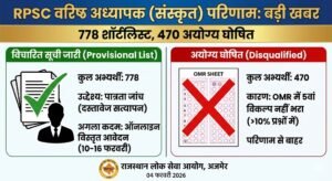 RPSC सीनियर टीचर भर्ती: संस्कृत विषय की प्रोविजनल लिस्ट जारी, 778 अभ्यर्थी शॉर्टलिस्ट; ‘5वां विकल्प’ नहीं भरने वाले 470 कैंडिडेट अयोग्य घोषित