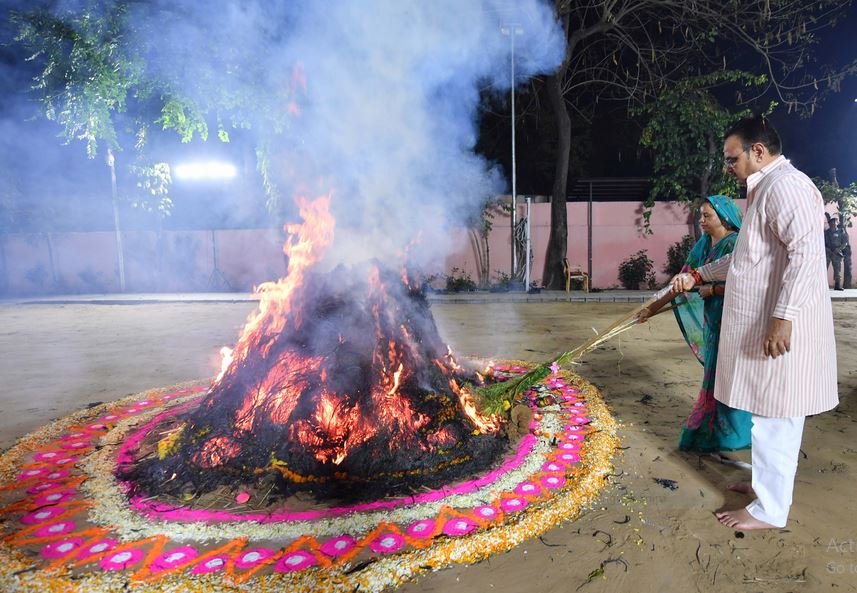 जयपुर। राजस्थान के मुख्यमंत्री भजनलाल शर्मा ने सोमवार मध्यरात्रि के बाद सिविल लाइन्स स्थित मुख्यमंत्री निवास पर पारंपरिक रीति-रिवाज के साथ होलिका दहन किया। इस अवसर पर उन्होंने समस्त प्रदेशवासियों के जीवन में खुशहाली, उत्तम स्वास्थ्य और समृद्धि की मंगलकामना की।
