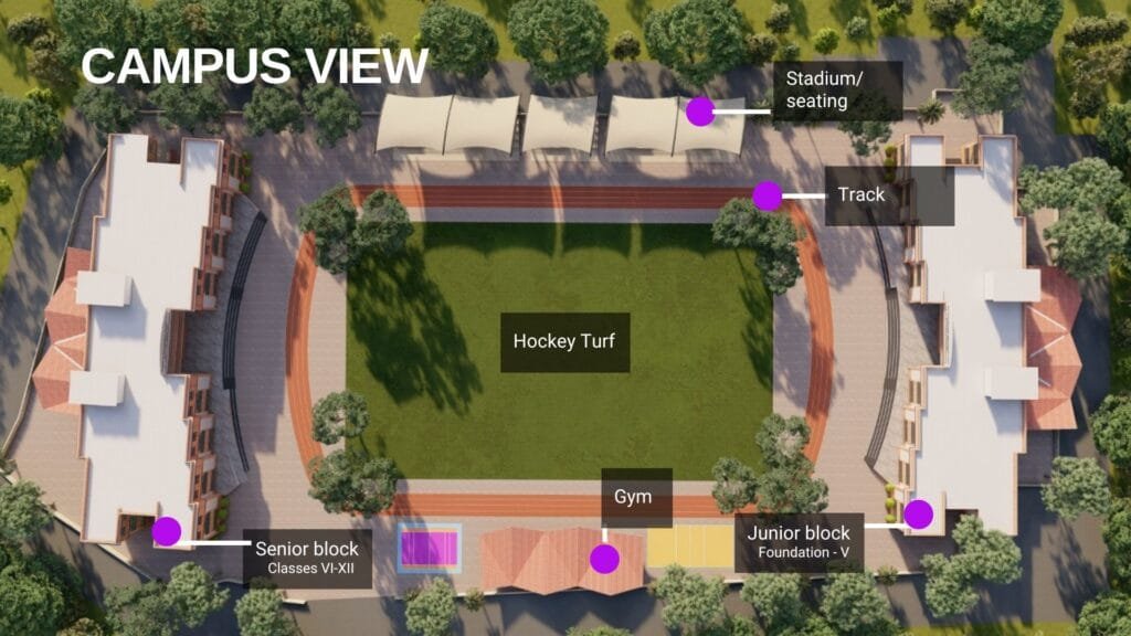 नवनिर्मित विद्यालय भवन में छात्रों को अत्याधुनिक शिक्षण उपकरणों (Modern Teaching Aids) से लैस आधुनिक कक्षाएं (Modern Classrooms) मिलेंगी। इसके अतिरिक्त, विज्ञान (Science) और कंप्यूटर प्रयोगशालाएं (Computer Labs), समृद्ध पुस्तकालय (Library), और खेलकूद के लिए विश्वस्तरीय सुविधाएँ भी उपलब्ध होंगी। इनमें विशेष रूप से एस्ट्रोटर्फ हॉकी मैदान (Astroturf Hockey Ground), एथलेटिक ट्रैक (Athletic Track), और बास्केटबॉल (Basketball), वॉलीबॉल (Volleyball) व कबड्डी (Kabaddi) के लिए कोर्ट (Courts) शामिल हैं। यह खेल विकास (Sports Development) को बढ़ावा देगा।
