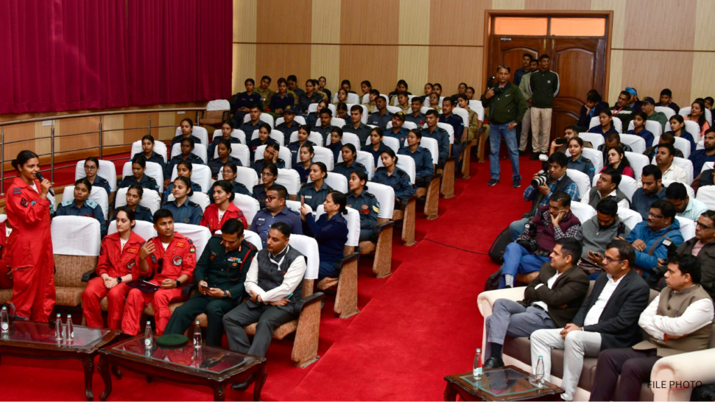 जयपुर: गुलाबी नगरी के आसमान में अपने करतबों से रोमांच भरने से पहले भारतीय वायुसेना के जांबाजों ने जमीन पर उतरकर युवाओं के दिलों में राष्ट्रभक्ति का जोश भरा। गुरुवार को एचसीएम रीपा (HCM RIPA) के भगवत सिंह मेहता सभागार में एक विशेष संवाद कार्यक्रम आयोजित हुआ, जहाँ वायुसेना की विश्व प्रसिद्ध ‘सूर्यकिरण एरोबैटिक टीम’ और ‘सारंग हेलीकॉप्टर डिस्प्ले टीम’ के सदस्य छात्रों से रूबरू हुए।