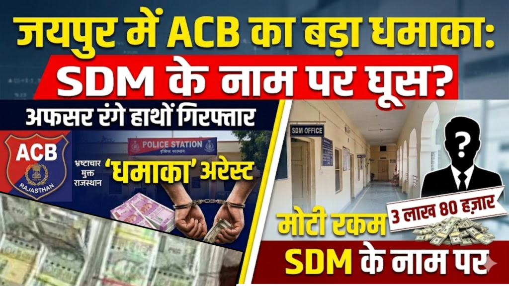 जयपुर: राजधानी जयपुर में आज (शुक्रवार, 27 फरवरी) भ्रष्टाचार निरोधक ब्यूरो (ACB) की टीम ने एक बड़ी सर्जिकल स्ट्राइक करते हुए सरकारी महकमे में हड़कंप मचा दिया है। जयपुर नगर-द्वितीय इकाई ने एक बड़ी कार्रवाई को अंजाम देते हुए जयपुर-पश्चिम वृत्त के भू-अभिलेख निरीक्षक (गिरदावर) अनिल कुमार को 3 लाख 80 हज़ार रुपये की भारी-भरकम रिश्वत लेते हुए रंगे हाथों गिरफ्तार किया है। इस ट्रैप की कार्रवाई के बाद से प्रशासनिक हलकों में खासी खलबली मची हुई है, क्योंकि घूस की इस मोटी रकम में उच्चाधिकारियों (SDM स्तर) के नाम का भी खुला इस्तेमाल किया जा रहा था।