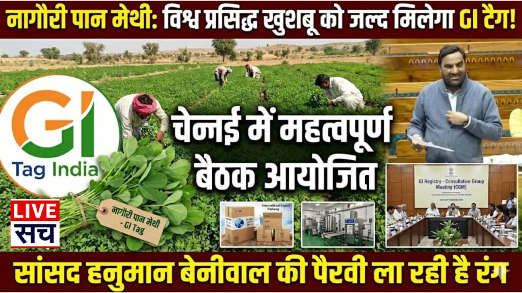 जयपुर । राजस्थान के नागौर जिले के किसानों के लिए एक बहुत बड़ी और सुखद खबर सामने आ रही है। रेगिस्तान की मिट्टी में उगने वाला ‘हरा सोना’ यानी “नागौरी पान मेथी” अब दुनिया भर में अपनी विशिष्ट पहचान दर्ज कराने के बेहद करीब पहुँच चुकी है। अपनी विशिष्ट सुगंध और स्वाद के लिए दुनिया भर की रसोइयों की पहली पसंद बनी “नागौरी पान मेथी” को अब आधिकारिक रूप से भौगोलिक पहचान (Geographical Indication – GI Tag) मिलने की प्रक्रिया अंतिम चरण में प्रवेश कर गई है। ‘Expose Now’ की विशेष रिपोर्ट के अनुसार, यह नागौर की कृषि अर्थव्यवस्था के लिए एक ऐतिहासिक क्षण साबित होने वाला है।