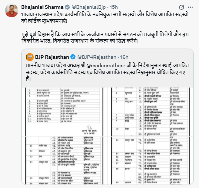 कार्यसमिति की इस व्यापक घोषणा में 52 विशेष आमंत्रित सदस्यों के नामों का भी एलान किया गया है। इस श्रेणी में पूर्व सांसदों, विधायकों, पूर्व मंत्रियों और संगठन के अन्य वरिष्ठ अनुभवी नेताओं को शामिल किया गया है। राजनीतिक विश्लेषकों का मानना है कि वसुंधरा राजे से लेकर वर्तमान नेतृत्व तक को एक साथ एक ही सूची में शामिल कर भाजपा ने भीतर खाने चल रही चर्चाओं को विराम देने और ‘एकजुट भाजपा’ का संदेश देने की पुरजोर कोशिश की है। यह नियुक्तियां जमीनी स्तर पर संगठन को धार देने और विपक्ष के खिलाफ एक मजबूत मोर्चा तैयार करने की रणनीति का हिस्सा हैं।