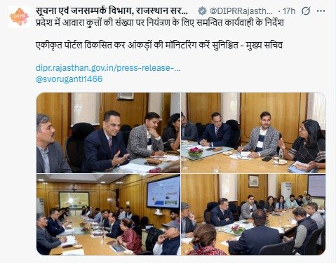 जयपुर। राजस्थान में आवारा कुत्तों के बढ़ते हमलों और उनकी अनियंत्रित आबादी को नियंत्रित करने के लिए भजनलाल सरकार ने अब ‘आर-पार’ की रणनीति तैयार कर ली है। सोमवार को शासन सचिवालय में मुख्य सचिव वी. श्रीनिवास की अध्यक्षता में एक उच्च स्तरीय बैठक आयोजित की गई, जिसमें कुत्तों के आतंक से निपटने के लिए एक आधुनिक ‘एकीकृत डिजिटल पोर्टल’ (Integrated Portal) विकसित करने का निर्णय लिया गया है।