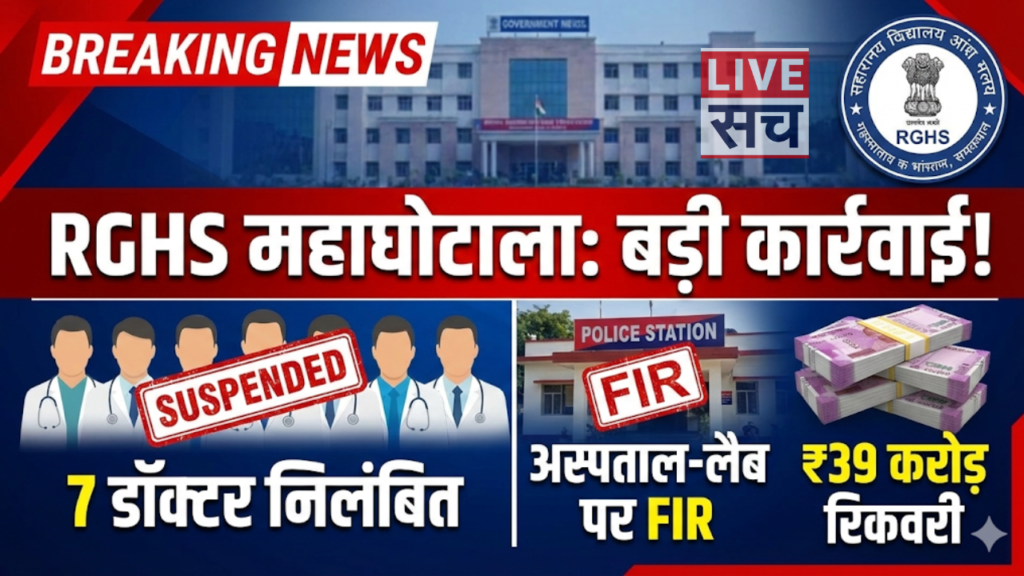 जयपुर: मुख्यमंत्री भजनलाल शर्मा और चिकित्सा मंत्री गजेंद्र सिंह खींवसर के निर्देशों के बाद राजस्थान गवर्नमेंट हेल्थ स्कीम (RGHS) में चल रहे बड़े फर्जीवाड़े पर सरकार ने सख्त रुख अपनाया है। योजना में अनियमितताएं बरतने पर राज्य सरकार ने बड़ी कार्रवाई करते हुए 7 चिकित्सकों को तत्काल प्रभाव से निलंबित कर दिया है। इसके अलावा, भरतपुर के एक निजी अस्पताल और बीकानेर के एक डायग्नोस्टिक सेंटर के खिलाफ एफआईआर (FIR) दर्ज करवाई जा रही है।