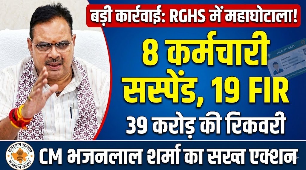 जयपुर: राजस्थान गवर्नमेंट हेल्थ स्कीम (RGHS) को पारदर्शी और सुदृढ़ बनाने के लिए मुख्यमंत्री भजनलाल शर्मा (CM Bhajanlal Sharma) के निर्देशन में चिकित्सा विभाग ताबड़तोड़ कार्रवाई कर रहा है। योजना में अनियमितताएं बरतने वाले डॉक्टरों और अस्पतालों पर कार्रवाई के बाद अब विभाग ने 8 और कार्मिकों (नर्सिंग ऑफिसर और स्वास्थ्य कार्यकर्ता) को तत्काल प्रभाव से निलंबित कर दिया है।