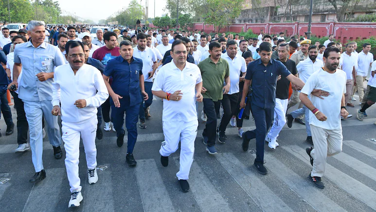 राजस्थान दिवस के पावन अवसर पर रविवार को राजधानी जयपुर सहित पूरे प्रदेश में ‘विकसित राजस्थान रन 2026’ का भव्य आयोजन किया गया। मुख्यमंत्री भजनलाल शर्मा ने हरी झंडी दिखाकर इस दौड़ की शुरुआत की और खुद भी युवाओं, खिलाड़ियों और आम जनता के साथ कदम से कदम मिलाकर दौड़े।