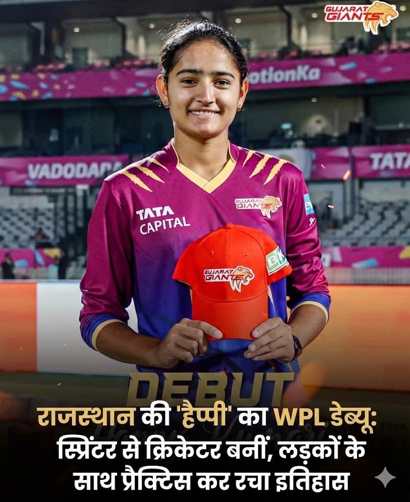 हैप्पी कुमारी को गुजरात जायंट्स (Gujarat Giants) ने 10 लाख रुपये की बोली लगाकर अपनी टीम में शामिल किया था। उन्होंने अपना पहला मैच आरसीबी (RCB) के खिलाफ खेला। हालांकि, पहले मैच में उन्हें बल्लेबाजी का मौका नहीं मिला, लेकिन उन्होंने एक ओवर गेंदबाजी कर अपनी उपस्थिति दर्ज कराई। भले ही खेल का समय कम था, लेकिन राजस्थान के लिए यह पल बहुत बड़ा था।