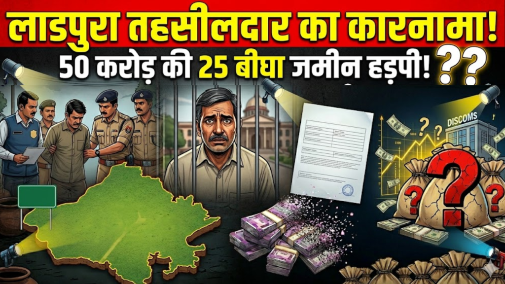 सरकारी जमीनों पर कब्जे और भ्रष्टाचार के मामले अक्सर सामने आते रहते हैं, लेकिन लाडपुरा तहसील में एक ऐसा ‘कारनामा’ उजागर हुआ है जिसने पूरे प्रशासनिक महकमे में हड़कंप मचा दिया है। यहाँ के तहसीलदार राजवीर यादव पर आरोप है कि उन्होंने राष्ट्रीय राजमार्ग-27 (NH-27) पर स्थित पंचायत समिति की बेशकीमती 25 बीघा जमीन को गुपचुप तरीके से एक निजी व्यक्ति के नाम नामांतरित (म्यूटेशन) कर दिया। इस जमीन की वर्तमान बाजार कीमत लगभग 50 करोड़ रुपये आंकी जा रही है।