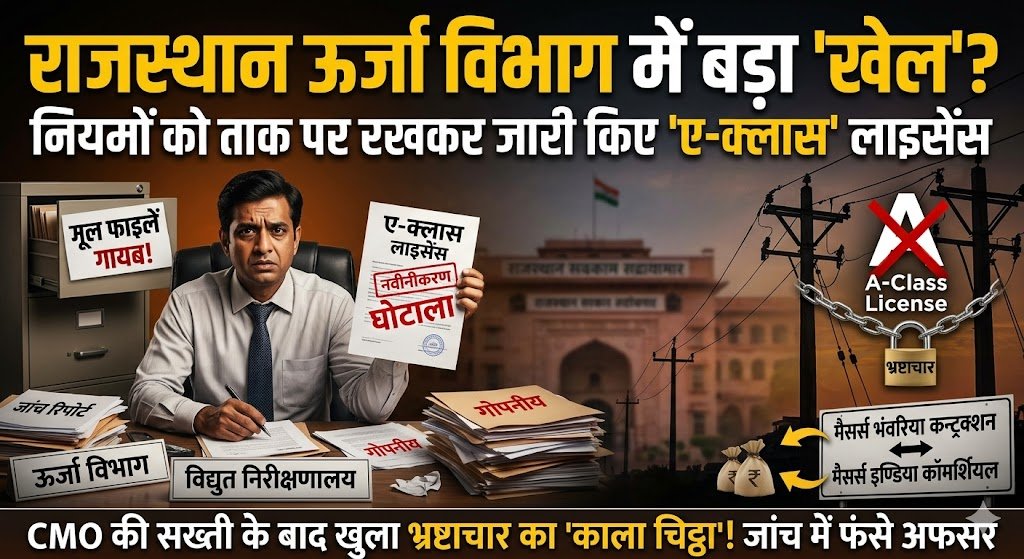 राजस्थान के ऊर्जा विभाग और विद्युत निरीक्षणालय में नियमों को दरकिनार कर ‘ए-क्लास’ इलेक्ट्रिकल लाइसेंस जारी करने का एक बड़ा मामला सामने आया है। मुख्यमंत्री कार्यालय (CMO) से प्राप्त शिकायत के बाद हुई विभागीय जांच की तथ्यात्मक रिपोर्ट (Factual Report) में विभाग के भीतर चल रही गंभीर अनियमितताओं और फाइलों के गायब होने का खुलासा हुआ है।