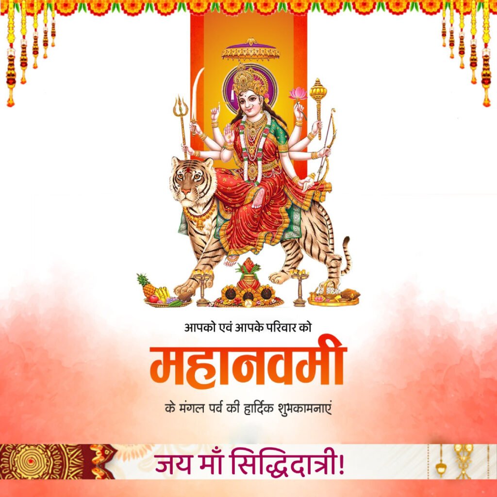 Mahanavami 2025 Date, Times, Wishes, Poster Images: शक्ति, सिद्धि और विजय के प्रतीक महानवमी पर्व की आपको और आपके परिवार को हार्दिक शुभकामनाएं! यह दिन माँ दुर्गा के नौवें स्वरूप माँ सिद्धिदात्री की पूजा का दिन है। ऐसी मान्यता है कि माँ सिद्धिदात्री सभी प्रकार की सिद्धियाँ प्रदान करती हैं और भक्तों की हर मनोकामना पूरी करती हैं।