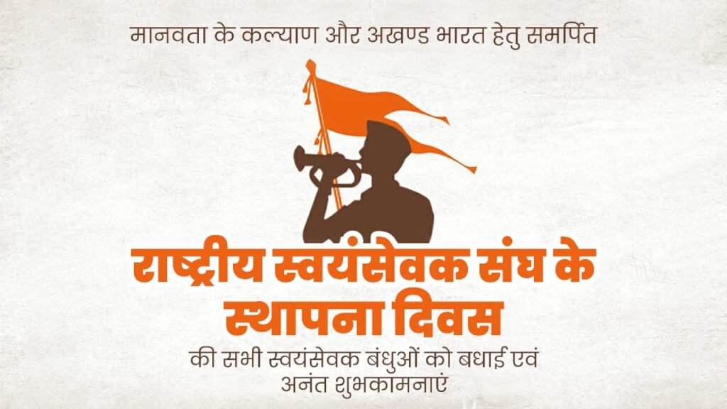 Rashtriya Swayamsevak sangh Foundation Day Wishes Poster Image Banner in Hindi: राष्ट्रीय स्वयंसेवक संघ (RSS) के स्थापना दिवस के अवसर पर पूरे देश में उत्साह का माहौल है। यह पावन पर्व विजयादशमी (Vijayadashami) के दिन मनाया जाता है, जो संघ के 100वें स्थापना वर्ष (Centenary Year) को और भी खास बनाता है।