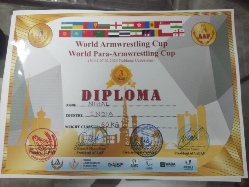 हरियाणा की पावन धरा, जो सदियों से योद्धाओं और एथलीटों की जननी रही है, ने अंतरराष्ट्रीय खेल मंच पर एक बार फिर अपना लोहा मनवाया है। उज्बेकिस्तान की राजधानी ताशकंद में आयोजित प्रतिष्ठित वर्ल्ड आर्म रेसलिंग कप 2026 (World Arm Wrestling Cup 2026) में हरियाणा के सिरसा जिले के रहने वाले महज 16 वर्षीय निहाल सिंह ने वह कर दिखाया, जो दिग्गज खिलाड़ियों के लिए भी एक सपना होता है। निहाल ने सीनियर मेंस 60 किग्रा (लेफ्ट हैंड) वर्ग में अकल्पनीय प्रदर्शन करते हुए कांस्य पदक (Bronze Medal) जीतकर इतिहास रच दिया है। उनकी यह सफलता इसलिए और भी ऐतिहासिक है क्योंकि उन्होंने यह मुकाम बिना किसी प्रोफेशनल कोच, बिना किसी महंगे जिम या विश्व स्तरीय ट्रेनिंग सेंटर के हासिल किया है। निहाल की ट्रेनिंग का एकमात्र जरिया यूट्यूब (YouTube) था।