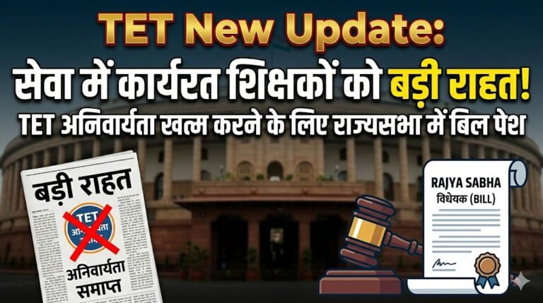 TET New Update: सेवा में कार्यरत शिक्षकों को बड़ी राहत, टीईटी अनिवार्यता खत्म करने के लिए राज्यसभा में बिल पेश