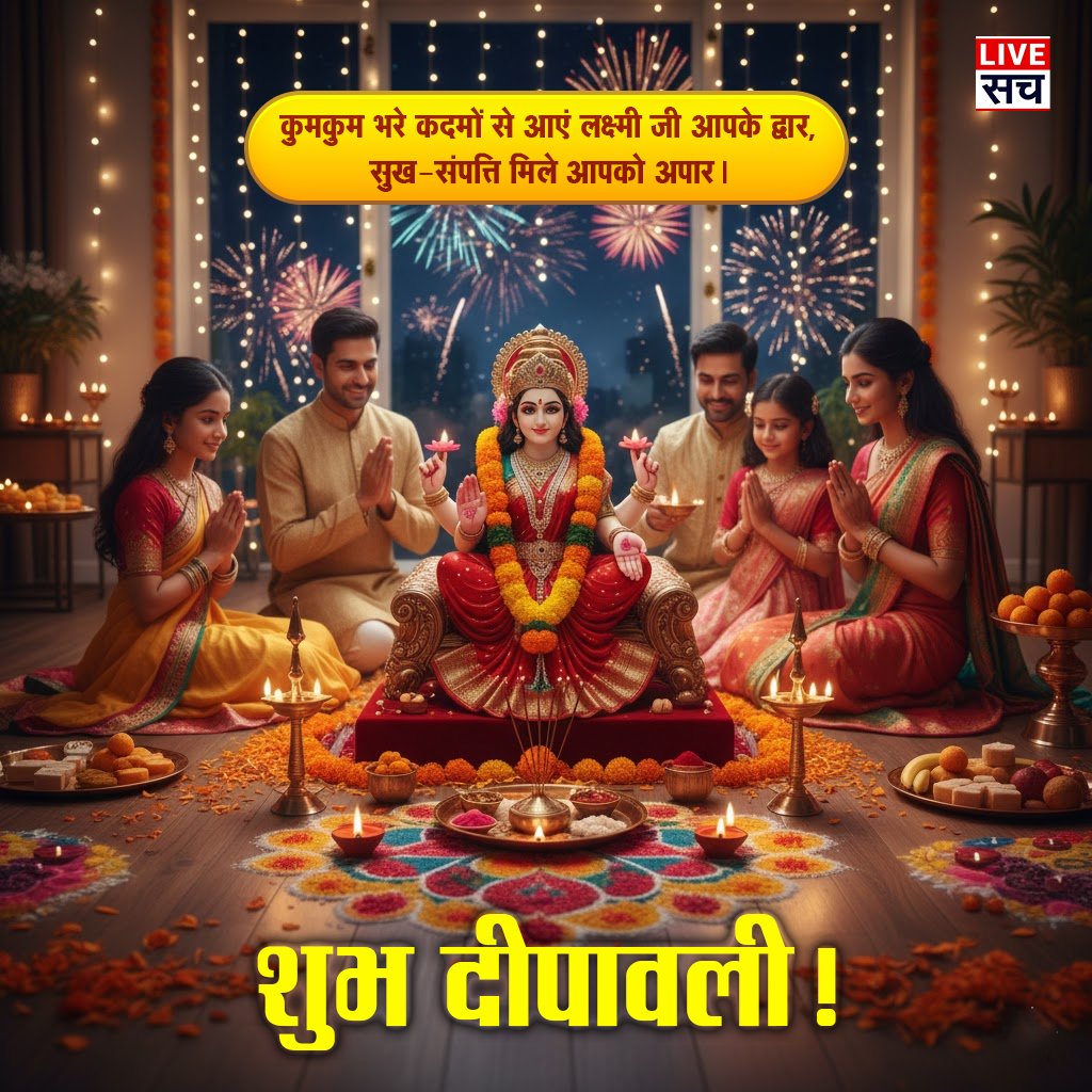 3. कुमकुम भरे कदमों से आएं लक्ष्मी जी आपके द्वार, सुख-संपत्ति मिले आपको अपार। दीपावली 2025 की हार्दिक बधाई।